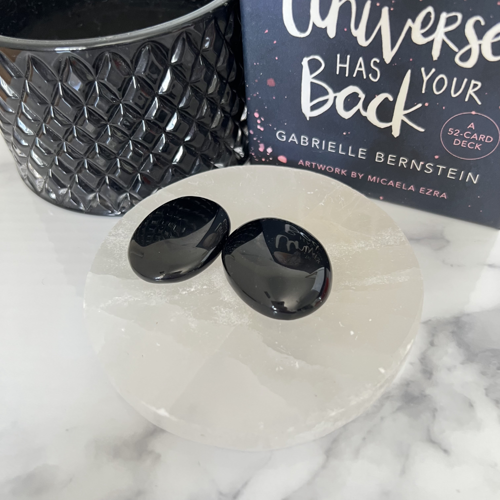 Black obsidian worry stone is an ancient trusty companion that has been used to help strengthen intuition and provide powerful insight through meditation. Each stone has been intuitively chosen just for you, no two stones are the same.