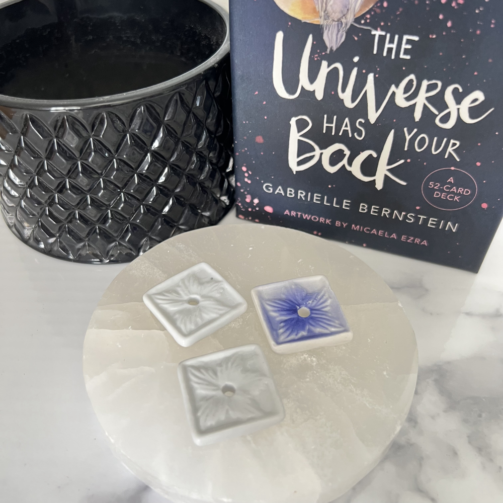 Ceramic Tile with hole in center. 2.5cm square. Available in White and Blue.