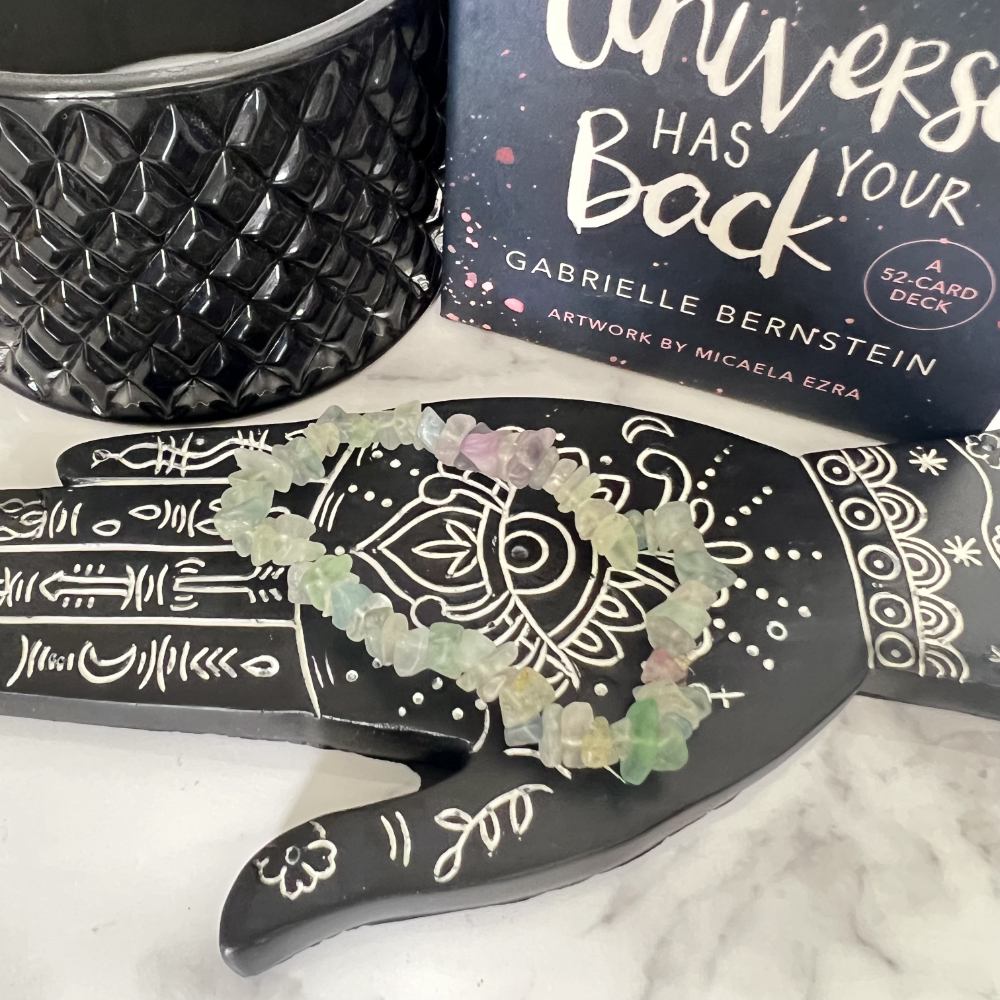 Fluorite is excellent in cleansing and stabilising the aura. Decorate your space or surround yourself with the soothing vibration of fluorite. It allows you to distinguish between outside influences and higher guidance. A stone for focus and clarity of the mind, fluorite can stimulate the third eye to heighten intuition and give you a clear view of your own hopes and aspirations making it an excellent stone for meditation.